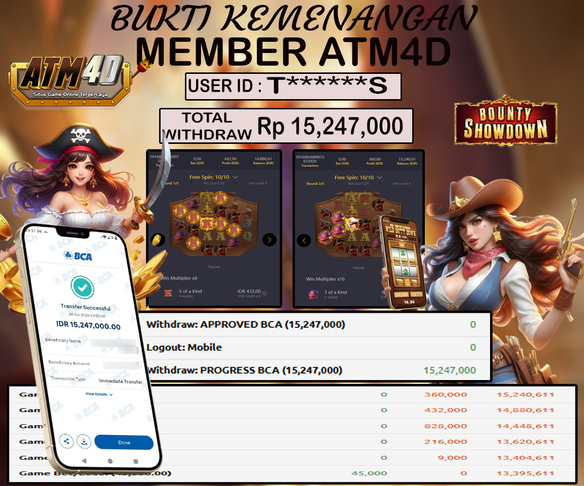 Jangan lewatkan kesempatan untuk meraih kemenangan besar. Daftar sekarang di ATM4D dan rasakan pengalaman bermain slot terbaik yang pernah ada! Putar gulungan, menangkan jackpot, dan jadilah bagian dari komunitas pemain sukses kami!