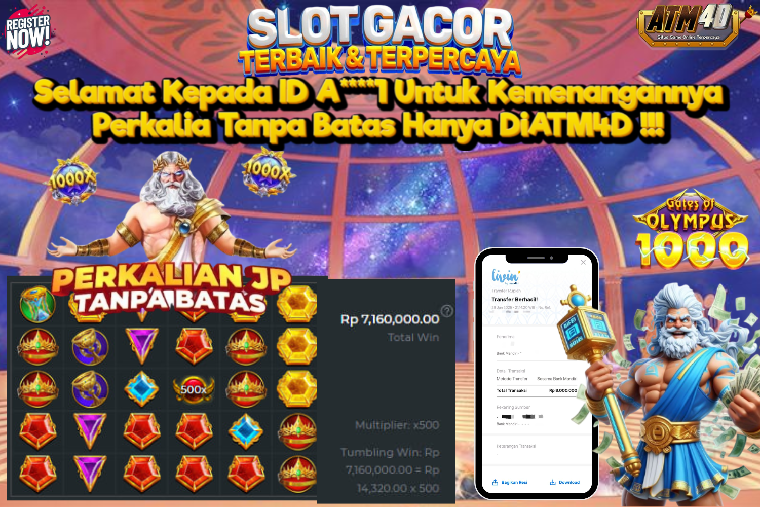 Jangan lewatkan kesempatan untuk meraih kemenangan besar. Daftar sekarang di ATM4D dan rasakan pengalaman bermain slot terbaik yang pernah ada! Putar gulungan, menangkan jackpot, dan jadilah bagian dari komunitas pemain sukses kami!