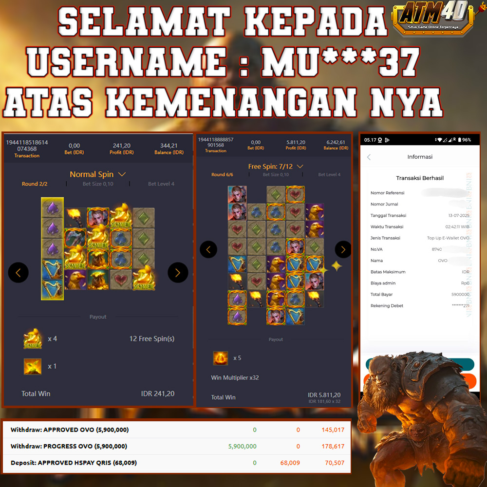Selamat Kepada Member Yang Berhasil Mendapatkan Jackpot Dipermainan PG SOFT, Berikut Bukti Jackpot Member Di Situs ATM4D