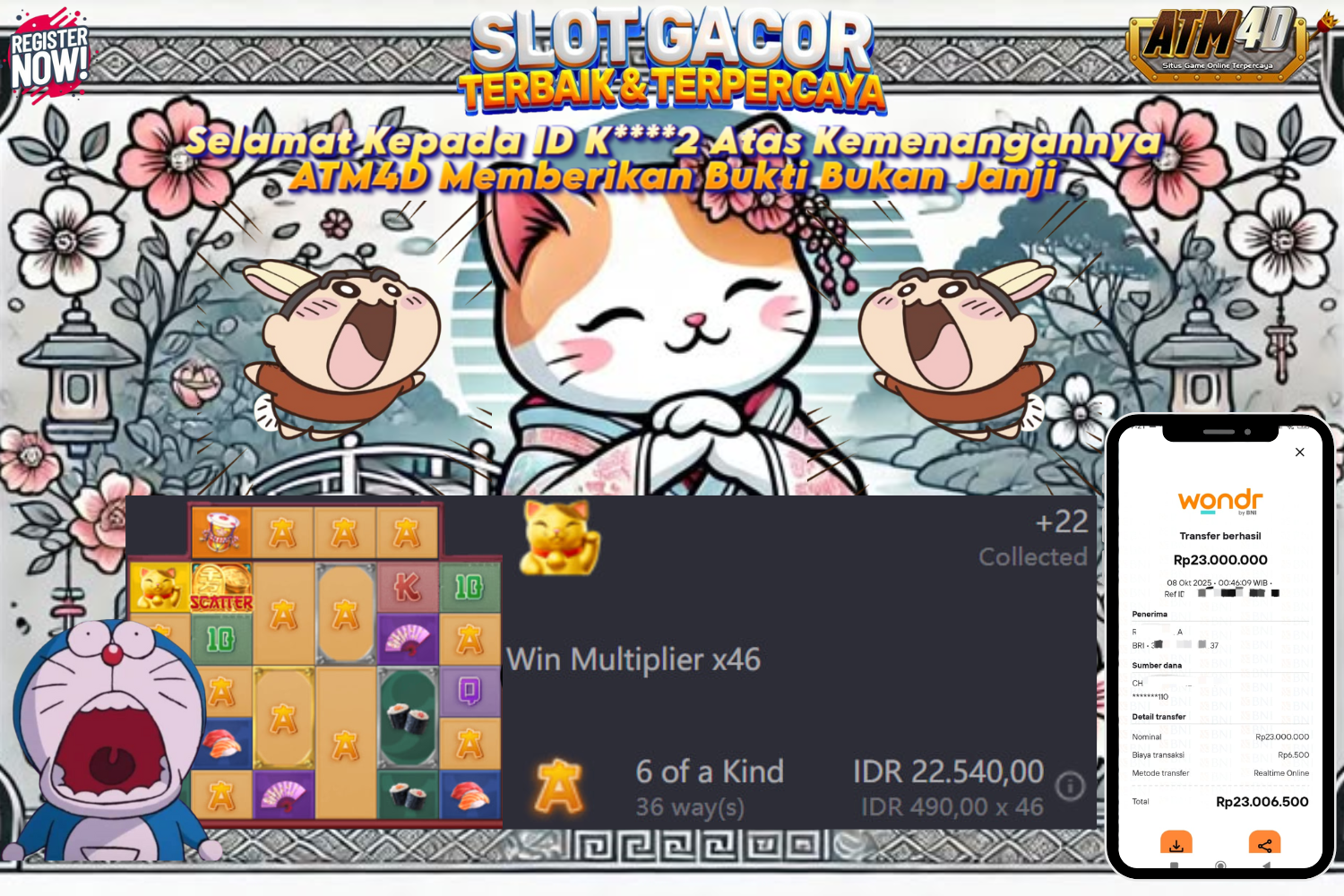 Jangan lewatkan kesempatan untuk meraih kemenangan besar. Daftar sekarang di ATM4D dan rasakan pengalaman bermain slot terbaik yang pernah ada! Putar gulungan, menangkan jackpot, dan jadilah bagian dari komunitas pemain sukses kami!