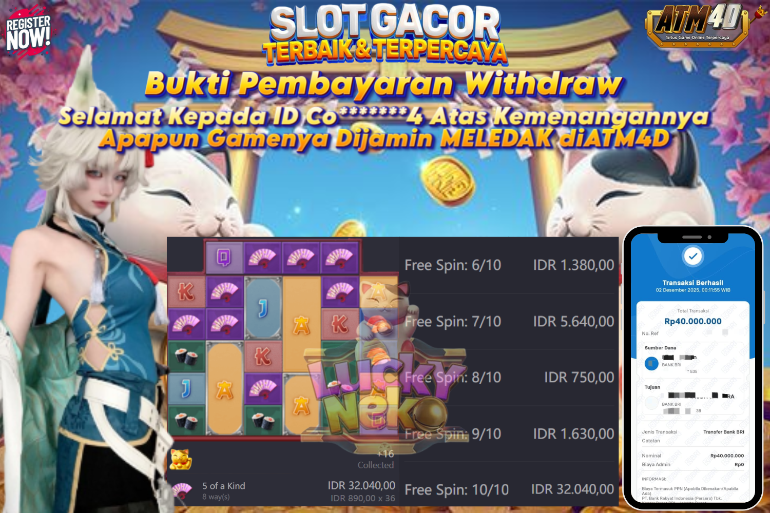 Bukti Kemenangan slot di provider 5G GAMES JACKPOT SLOT LUCKY NEKO 2 DESEMBER 2025