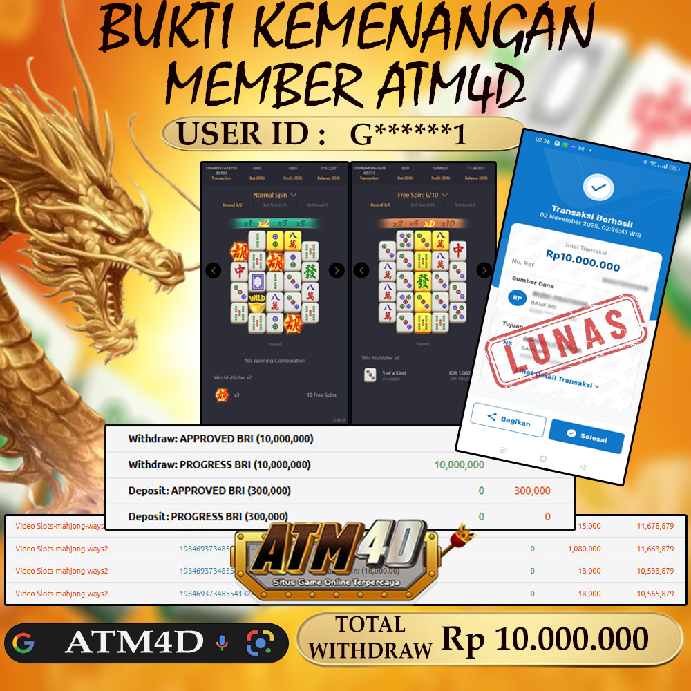 Jangan lewatkan kesempatan untuk meraih kemenangan besar. Daftar sekarang di ATM4D dan rasakan pengalaman bermain slot terbaik yang pernah ada! Putar gulungan, menangkan jackpot, dan jadilah bagian dari komunitas pemain sukses kami!