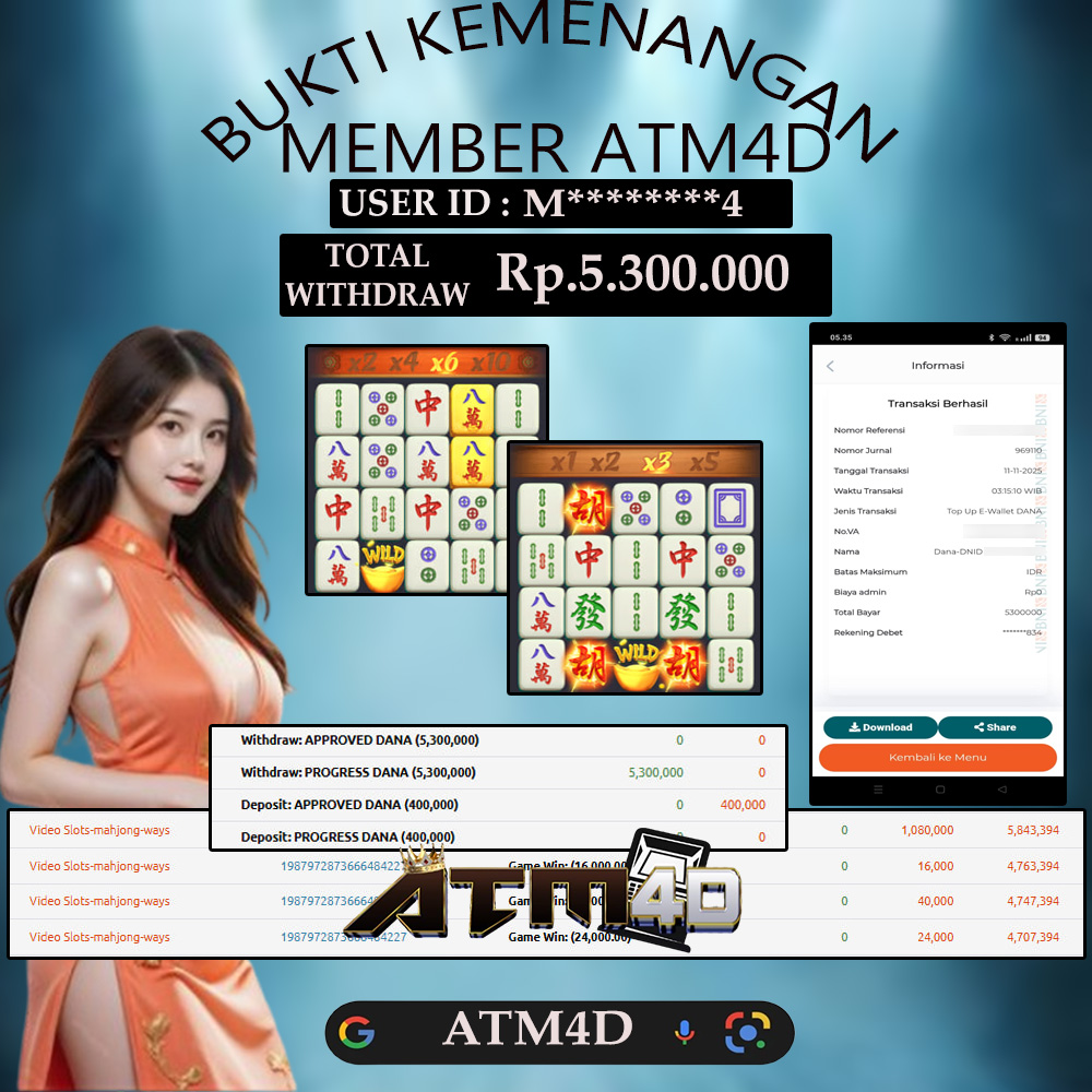Jangan lewatkan kesempatan untuk meraih kemenangan besar. Daftar sekarang di ATM4D dan rasakan pengalaman bermain slot terbaik yang pernah ada! Putar gulungan, menangkan jackpot, dan jadilah bagian dari komunitas pemain sukses kami!