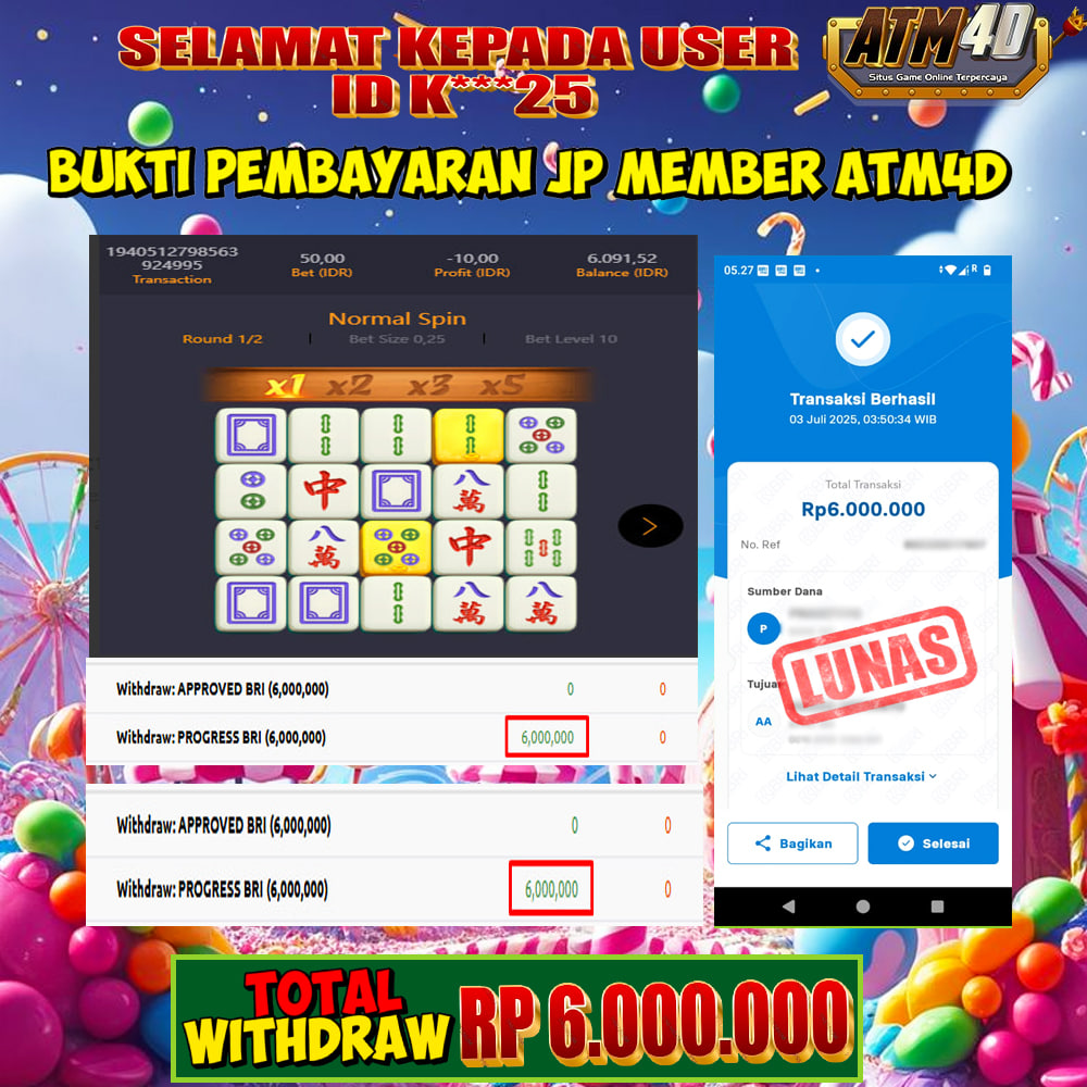 Selamat Kepada Member Yang Berhasil Mendapatkan Jackpot Dipermainan PG SOFT, Berikut Bukti Jackpot Member Di Situs ATM4D
