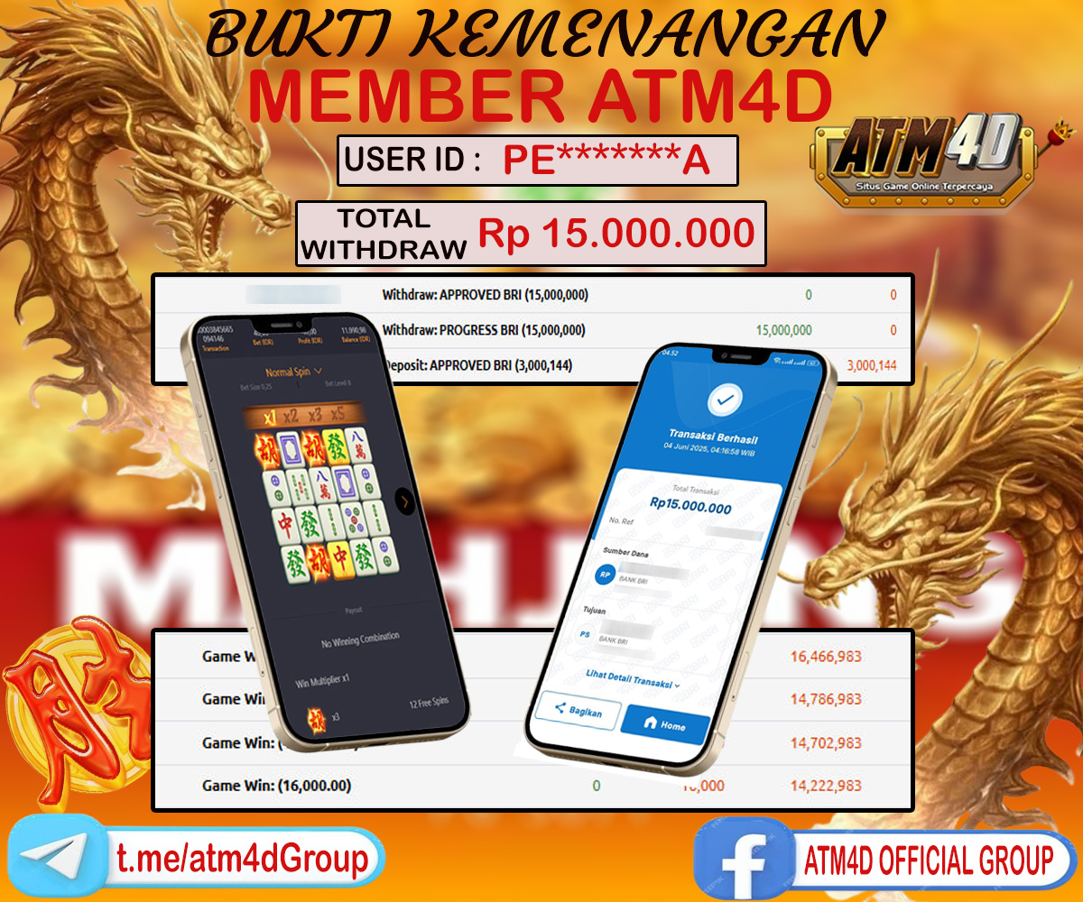 Jangan lewatkan kesempatan untuk meraih kemenangan besar. Daftar sekarang di ATM4D dan rasakan pengalaman bermain slot terbaik yang pernah ada! Putar gulungan, menangkan jackpot, dan jadilah bagian dari komunitas pemain sukses kami!