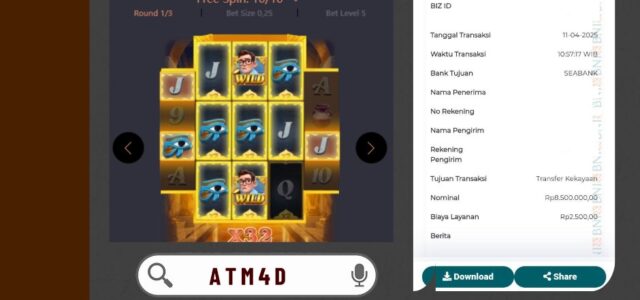 Jangan lewatkan kesempatan untuk meraih kemenangan besar. Daftar sekarang di ATM4D dan rasakan pengalaman bermain slot terbaik yang pernah ada! Putar gulungan, menangkan jackpot, dan jadilah bagian dari komunitas pemain sukses kami!