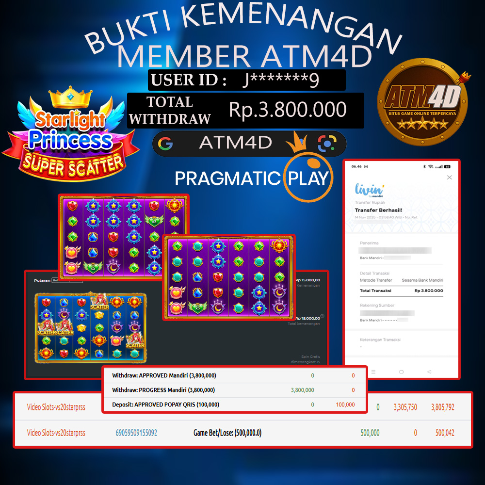 Selamat Kepada Member Yang Berhasil Mendapatkan Jackpot Dipermainan PRAGMATIC PLAY, Berikut Bukti Jackpot Member Di Situs ATM4D