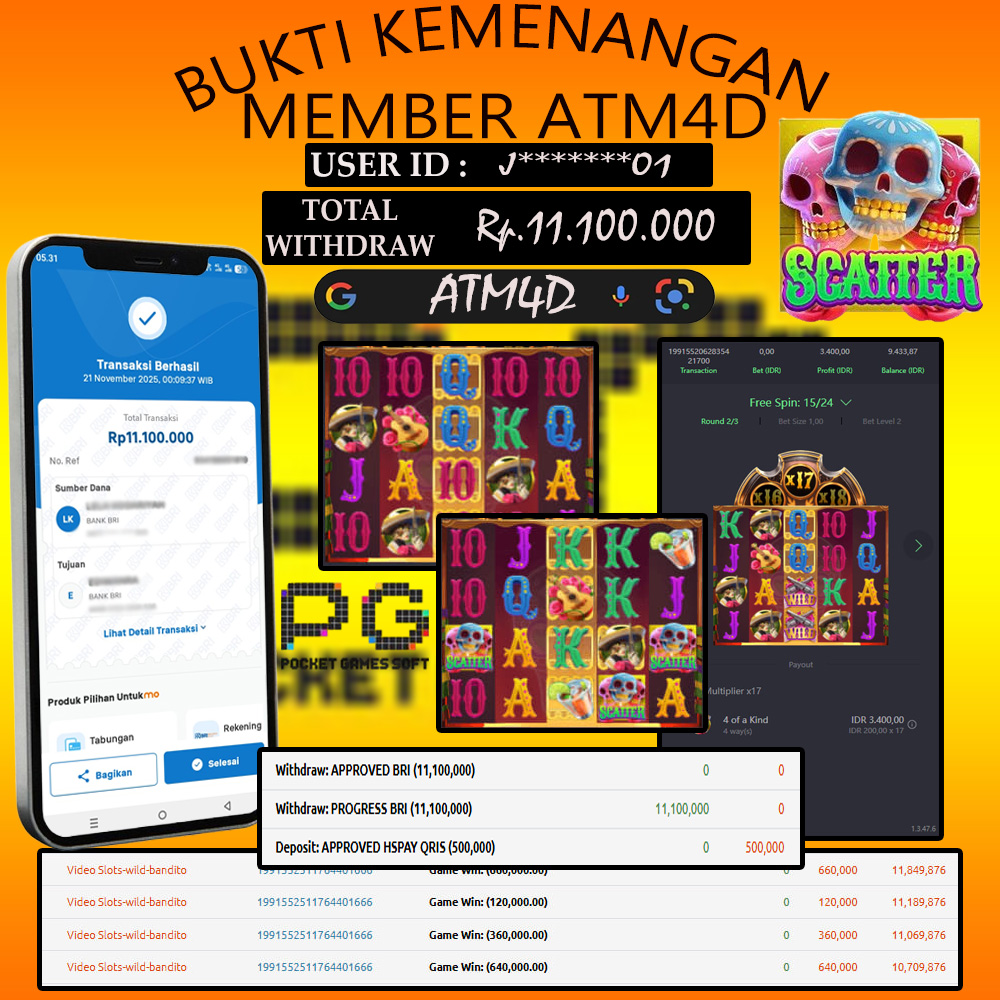 Bukti Kemenangan slot di provider PG SOFT JACKPOT WILD BANDITO 21 NOVEMBER 2025
